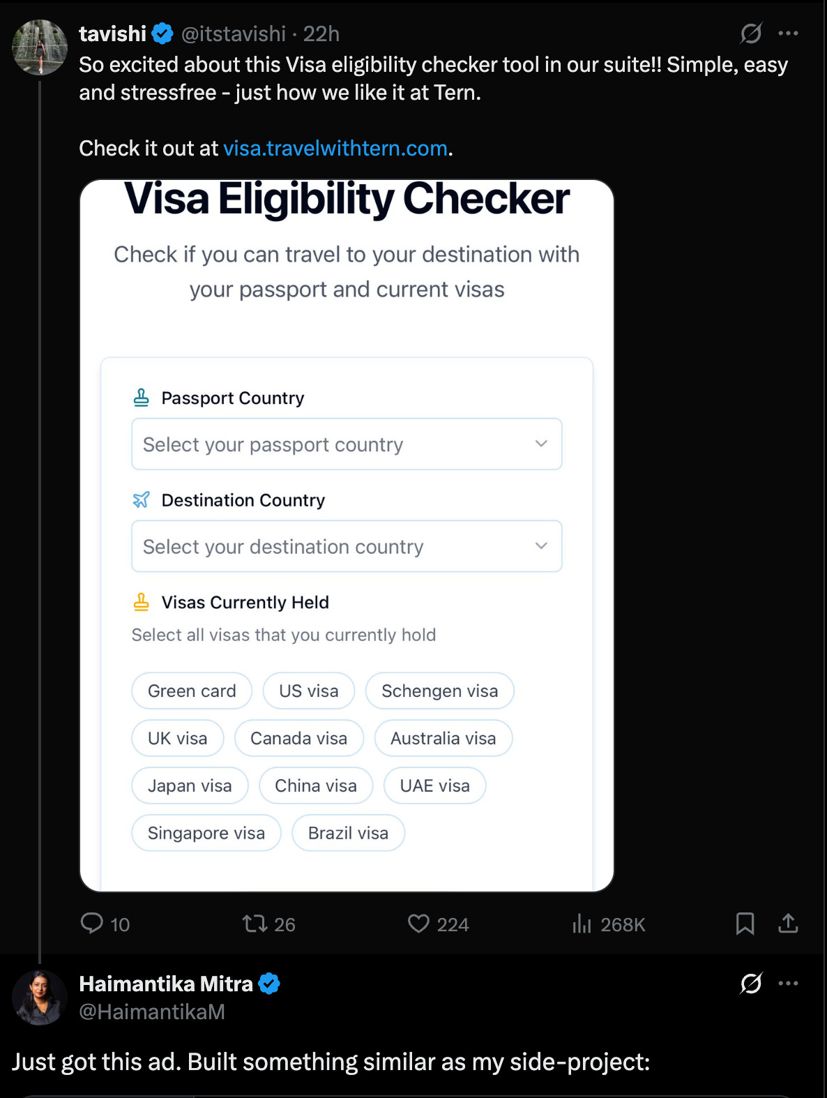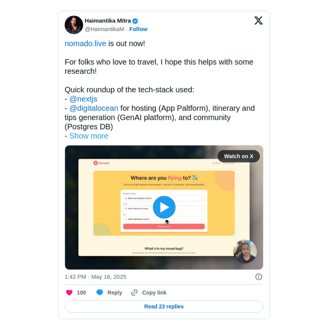 ).I think of problems that I face or things I read about online (I cannot emphasize enough how reading random articles, newsletters, and discussions on X/Reddit forums has helped me). Nomado was built out of the frustration of applying for visas and being stuck in the endless loop of poorly designed government websites.